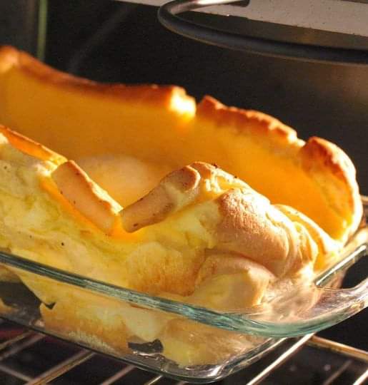 3. Pour the batter over the melted butter and bake for 22 minutes or until edges have puffed up and started to turn brown.