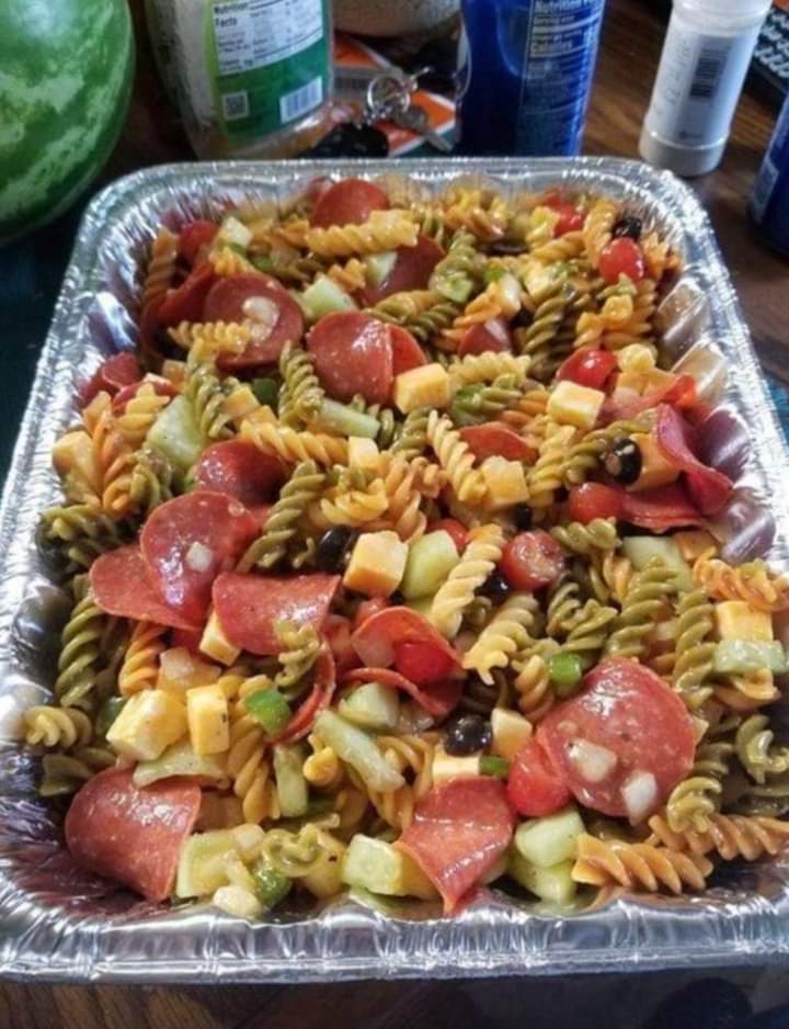 The recipe for The BEST Pasta Salad has always gone by another name in my family: “Grandpa’s Pasta Salad“. That’s because this recipe was one of his very favorites and he always requested that it be served at special occasions. That said, I can’t tell you how happy it makes me that this pasta salad recipe is also my husband’s favorite recipe.