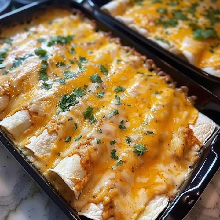 Take 1 tortilla and fill it with 2-3 tablespoons of the chicken mixture, then place the seam side on the baking dish. Repeat with the rest of the tortilla and the filling.