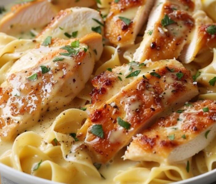 • Serve hot and enjoy this delicious Chicken with Buttered Noodles.