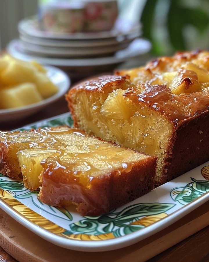 For the glaze, mix powdered sugar and pineapple juice together and drizzle over the cooled bread.