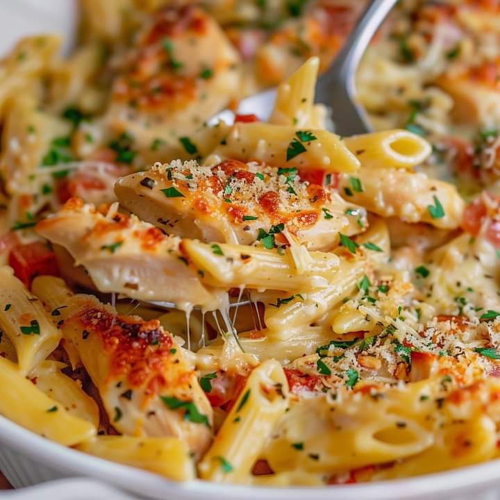 9️⃣ Remove from the oven and let cool slightly before serving. Garnish with chopped fresh parsley, if desired. Enjoy your Garlic Parmesan Chicken Pasta Bake!