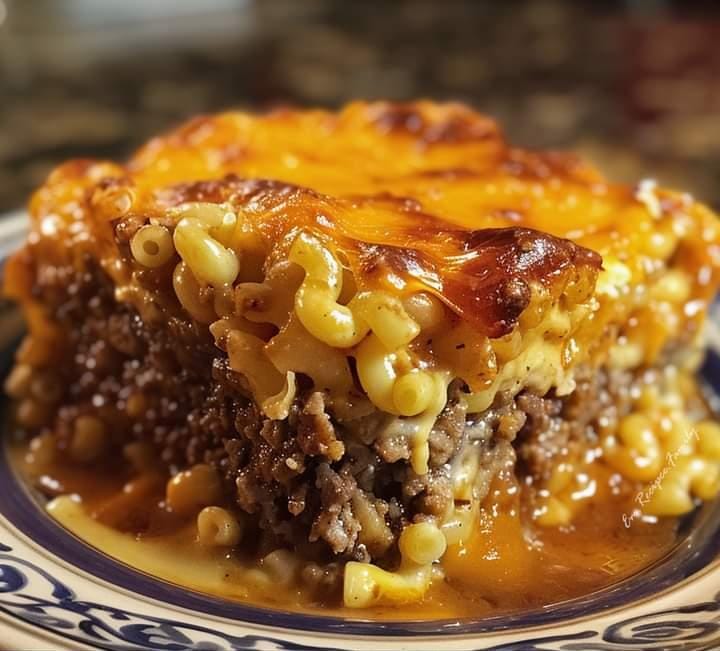 Once the meatloaf is done baking remove it from the oven. Spread remaining ¼ cup of bbq sauce over the top of meatloaf. Scoop the macaroni and cheese over the top. Sprinkle the remaining ½ cup of cheese on top the macaroni. Bake for 15 minutes.
