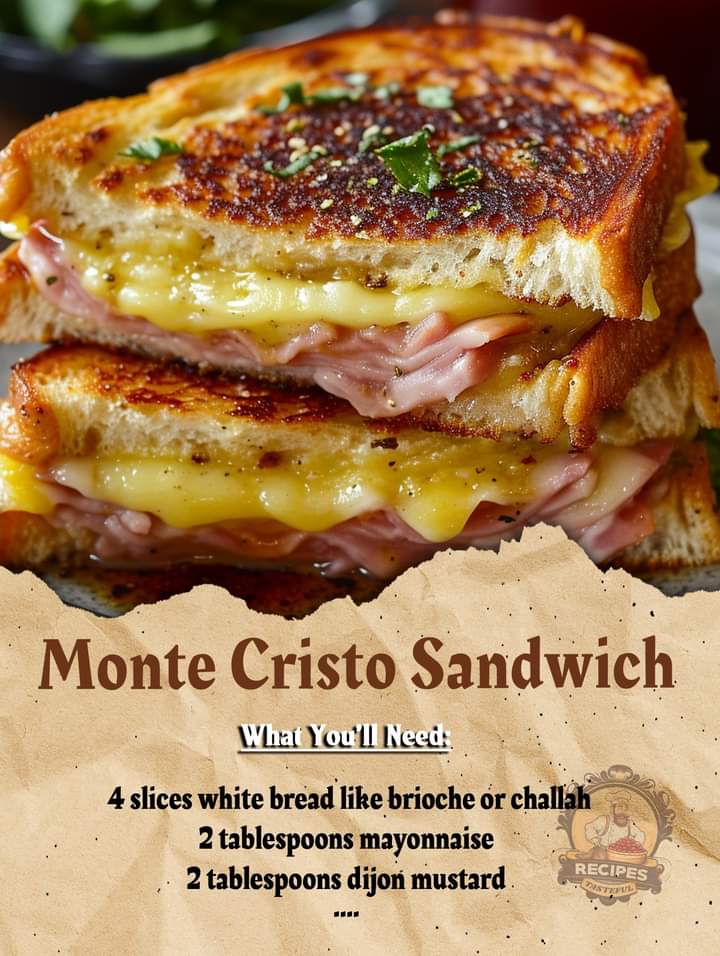 Now melt 2 tablespoons butter in a large skillet over medium-low heat. Dip each sandwich in the egg mixture, turning to coat both sides. Add the sandwich to the hot skillet and cook until golden brown on both sides. Cover the pan with a loose piece of aluminum foil to make sure the cheese melts, and any egg mixture cooks through.
