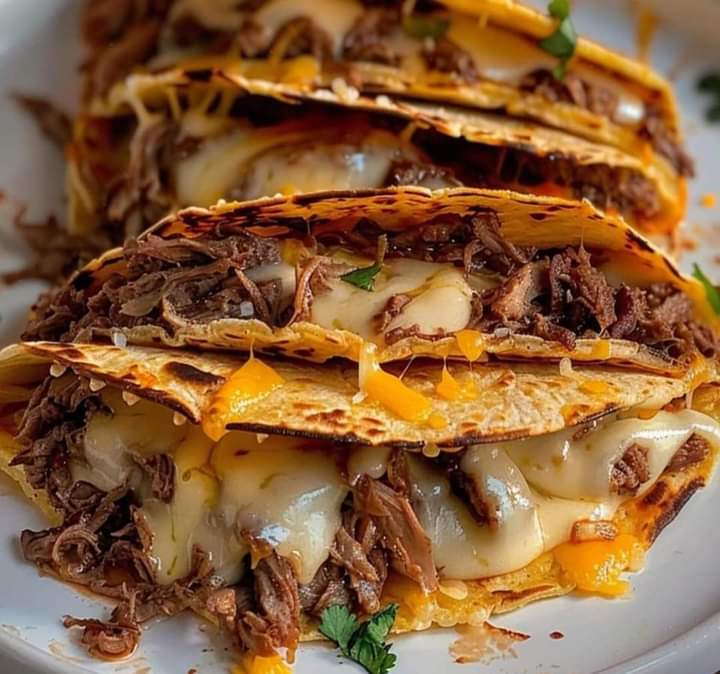 Optionally, dip assembled tacos in the beef liquid before serving for extra flavor.