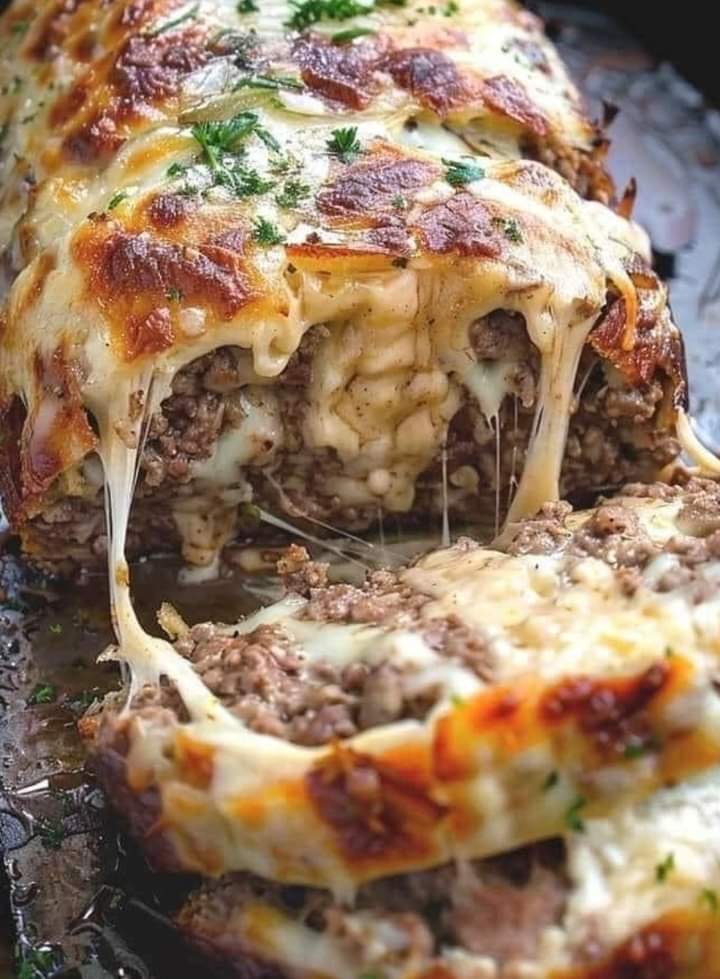 Place half of the mixture down, place the solid piece of provolone in the middle, top with the remaining mixture, seal the edges well, shape the loaf as desired and place on a baking sheet.