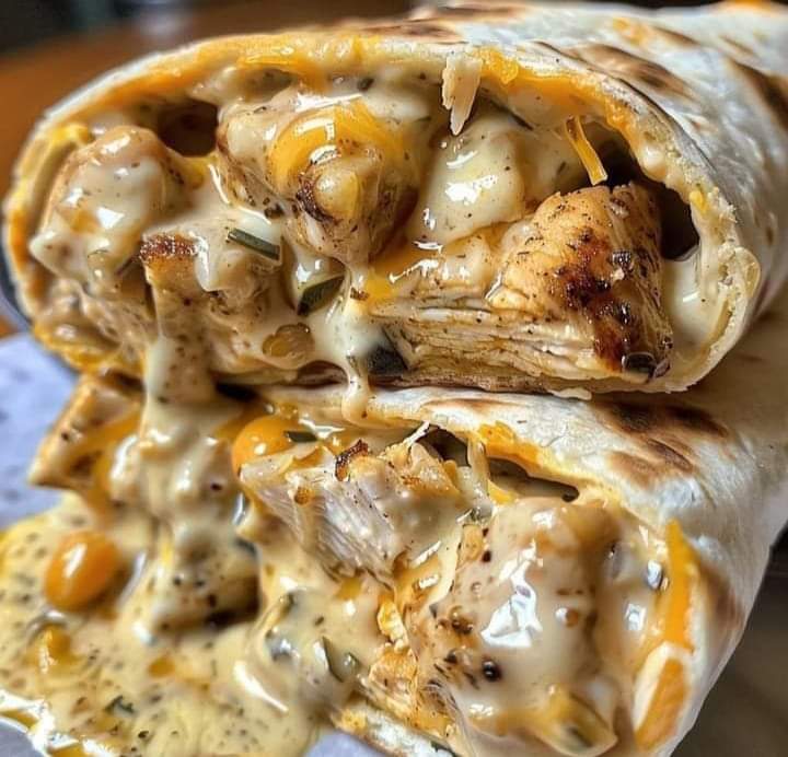 Assemble the wraps: Lay out the tortillas and spread a spoonful of creamy garlic sauce on each one. Top with the cooked chicken, then sprinkle with shredded cheddar and mozzarella cheeses.